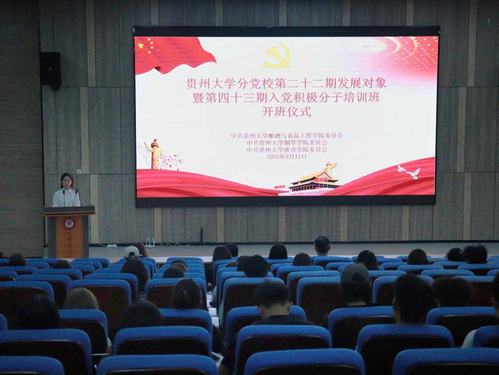 9月17日,贵州大学万象城平台、烟草学院、体育学院分党校第二十二期发展对象暨第四十三期入党积极分子培训班开班仪式在崇德楼104报告厅联合举办。分党校校长、万象城平台党委书记凌琦,体育学院正处级组织员陈朝东,万象城平台副处级组织员王瑶,及全体学员参加开班仪式。开班仪式由分党校班主任邹丽平主持。